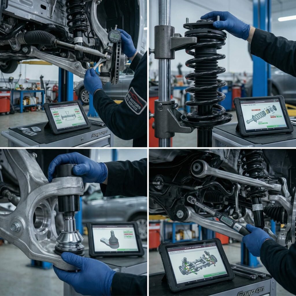 We check struts, shocks, springs, control arms, and tie rods. Nothing gets missed.